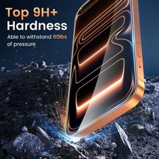 Compatible with the 2025 Apple iPhone 17 Pro Max (6.9 inch); not for iPhone 16 Pro or Pro Max. Military-grade protection with 9H hardness tempered glass; passes 10FT drop tests and 44lbs edge pressure tests. Upgraded camera lens cover for high-end protection while maintaining original image quality. 0.33mm ultra-thin glass ensures high touch sensitivity and clarity for an optimal viewing experience. Easy bubble-free installation with included kits and alignment frame; case-friendly design compatible with 99% of cases.