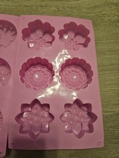 The product is a set of 3 silicone soap molds, with a flower and square pattern design. The molds have 6 cavities each and are made of silicone material. The package dimensions are 8.74x6.3x2.4 inches, and the size of each mold is 20cm x 22cm x 3cm. The flower soap mold comes in a beautiful color and is perfect for creating unique and decorative soaps. Ideal for adults and women interested in crafts like candle making and soap making.