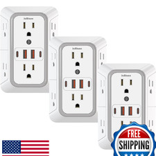 3 Pack Surge Protector, 6 AC Outlets, 4 USB Ports, Wall Outlet Extender