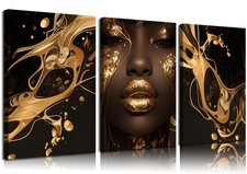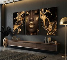 3 Pcs Black Gold Woman Canvas Wall Art African American Black Girl Wall Decor...