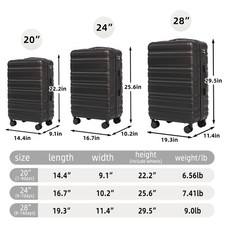 3 Piece Luggage Set Hardshell Carry on Suitcase with Spinner & Lock 20''24''28''