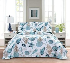 3-Piece Reversible Nautical Theme Bedspread Coverlet Full/Queen Cyan