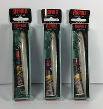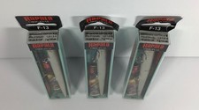 Pictured are 3 Rapala Original Floating F-13's. Each bait is minnow shaped and floats. The pack includes 3 Silver color. These wood lures can dive up to 6 feet and are ideal for targeting all freshwater and saltwater fish species. With a length of 5 1/4 inches and weigh 1/4 oz, these baits make for effective fishing tools for anglers of all skill levels. The baits in the photos are the baits you will receive. They are new in original box, never used. The individual pictures are stock photos for color reference only.