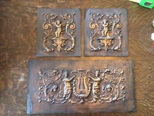 3 Solid Copper Embossed Picture Panes Music Cherubs Harp Victorian Vose Piano