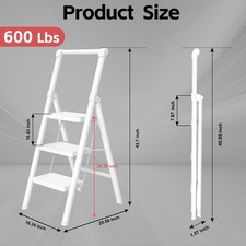3 Step Ladder with Handle Foldable Stool for Adults - Extra Wide Non-Slip Pedal