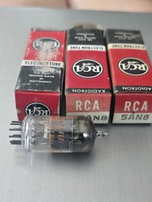 The product is a set of three vintage RCA Electron Tubes model 5AN8, made in the United States. These tubes are new old stock (NOS) in their original packaging, ensuring their authenticity and quality. Perfect for vintage audio and video enthusiasts looking to restore or enhance the performance of their equipment, these RCA tubes are a rare find for collectors of vintage electronics.