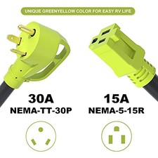 30 Amp to 15 Amp RV Adapter,30 Amp to 110 Volt 30A Male/15A Female - 12 inch