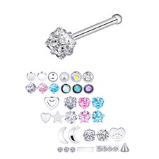 Gauge(Thickness): 20g (0.8 mm). Color: Silver & Colorful CZ. Material: Stainless Steel. Length: approx.