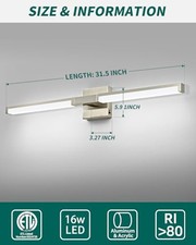 DIMMABLE FEATURES & LIGHT SIZE: dimmable LED vanity lights for the bathroom. HIGH-QUALITY MODERN VANITY LIGHT: Made with sturdy aluminum, frosted acrylic, and an exquisite brushed nickel finish. Such as the bathroom, desk, bedside, above the mirror, hallway, porch, mural, living room, kitchen, etc.