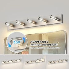 32In Motion Sensor Vanity Light Brushed Nickel, 3CCT 5-Light Modern LED Bathroom Lighting Fixtures Over Mirror, Rotatable Head, Dimmable 3000K-6000K Wall Sconce, Anti-Rust Silver. 3 Color Temperatures & Dimmable: Customize your ambiance with the 3CCT slide switch.