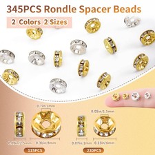345PCS Rondelle Spacer Beads for Jewelry Making, 6mm and 8mm, Gold Silver