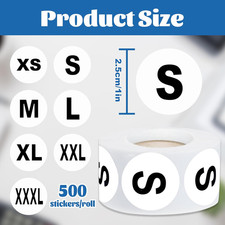 3500 PCS Clothing Size Stickers Labels, 7 Rolls 1 Inch round Self Adhesive Size