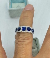 3Ct Cushion Lab-Created Sapphire 5 Stone Engagement Ring 14K White Gold Plated