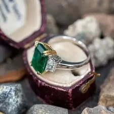 3Ct Emerald Cut Lab Created Emerald Engagement Ring 14K White Gold Plated Silver