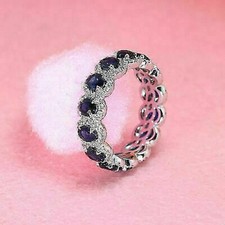 3Ct Oval Cut Lab Created Bule Sapphire Wedding Ring 14K White Gold Plated Silver