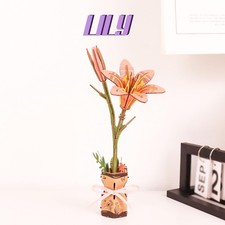 3D Flower Wooden Puzzles Kit, DIY 129 pieces, 4 inches x 7 inches, Pink Lily