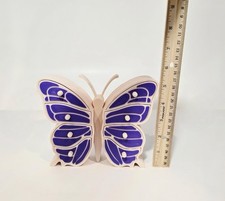 The 3D Printed Butterfly Jewelry Box is a handmade, purple plastic jewelry box designed for women. It is suitable for storing necklaces, rings, and earrings. This unique piece is perfect for organizing and displaying your favorite jewelry items with its adorable butterfly design. The non-vintage style adds a modern touch to your jewelry collection while providing a stylish and functional storage solution.