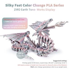 Allowing 3D printing enthusiasts to create amazing works much easier. [Fast Color Change Silk PLA]- The "Earth Tone" combined multi-colors in one shiny PLA base. Higher-cost production technology to achieve the faster color changing aim.