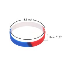 What is this?The Silicone Wristbands are widely used for sports activities and events, organization activities, public welfare activities gifts, outdoor sports bracelets, custom logo bracelets, party bracelets, classified logo wristbands, etc.What will I get?Width: 1/2 Inch/12mm;Circumference: 8.5 Inch/216mmThickness: 0.08 Inch/2mmColor: Red White Blue SegmentedMaterial: SiliconeIn the package of: 3Pcs x Silicone WristbandsAre there any advantages of the product?Silicone material, soft to the touch, very suitable for daily life and sports occasions.How to use it?With good elasticity, it is soft and comfortable to wear, and easy to take off and on.What should I notice?Please determine the most suitable length for your wrist before using the adhesive tape.