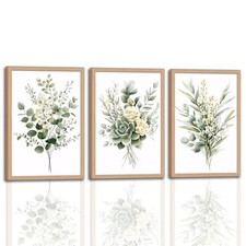 3Pcs Framed Vintage Botanical Wall Art Plant 12x16 Inches Eucalyptus Leaf 3pcs