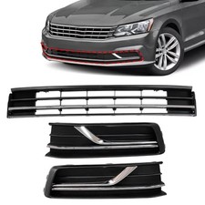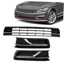 3PCS Front Bumper Lower Grille & Front Grill Fog Lamp Bezel, For Passat 16-19