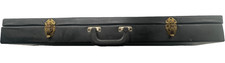 This multi-bow cello bow case holds up to six cello bows. The exterior features a durable black textured covering over a solid hard shell frame, paired with brass hardware and a sturdy carry handle. The interior is lined in red felt with individual bow slots on each side to keep bows separated and protected. The case is used but remains in good overall condition. There are minor cosmetic scuffs on the exterior and natural patina on the brass hardware, consistent with normal use. The interior is clean and fully functional, and all latches close securely.