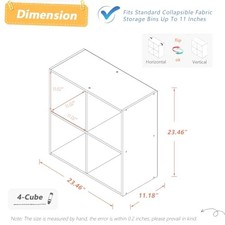 4 Cube Organizer Bookcase - Fabric Storage Bins Container, Open 4-Cube White