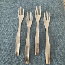 4 Gourmet Settings LOFT Stainless Flatware Salad Forks Concave Satin 18/10