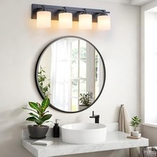 4 Light Modern Bathroom Light 4-Lights Black - Milky White Glass Shades