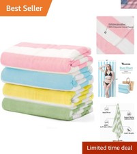 4 Pack Cabana Stripe 250GSM Polyester Lightweight Quick-Dry Beach Towel & Bla...