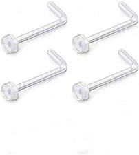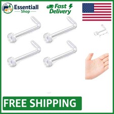 4 Pcs Hypoallergenic Clear Bioflex Nose Rings L Shape - 18g Adjustable Studs