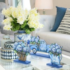 4 Pcs Spring Table Centerpieces Decorations Hello Spring Wooden Hydrangea Blue