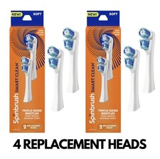 4 Spinbrush Smart Clean Replacement Brush Heads, Soft, Dual Action, Triple Sided. All of these are brand new, and sealed with manufacturer seals. You will receive 2 packs of the brush heads. Each pack contains 2 heads, giving you 4 total replacement brush heads. Due to the nature of the item, no returns will be accepted. All include FREE SHIPPING & ALSO SHIP THE EXACT SAME DAY GUARANTEED.