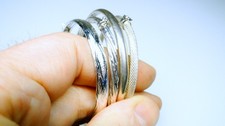 Bracelets range in widths from about 1/4" more or less, most inside openings about 2 1/2" (one is a little smaller). I won't split up the lot or take less. Lot is sold as found-as wearable jewelry, not priced as scrap.
