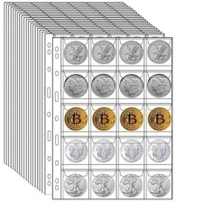 400 Pocket Coin Collecting Pages - 20 Sheets for 3/4 Ring Binders, Plastic Sleev