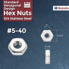 400pcs Hex Nuts - [#5-40] 304 Stainless Steel 18-8 Hardware Nuts, Silver