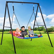 ✅COMBO SWING SET: This swingset includes 1x swing frame + 1x 60” platform swing set. Ideal choice for your garden, backyard, playground and more indoor/ outdoor places. ✅HEAVY DUTY SWING FRAME: This swing stand can support up to 440lbs with the sturdy A-Frame structure and strong ground anchors, well made to keep kids secure and comfortable while playing crazily. Parents can leave kids to enjoy themselves or join them in the fun. ✅MULTIFUNCTIOINAL SKYCURVE SWING: The unique curved design makes this large platform swing more exciting and interesting than other swings! You can sit, lie, stand or surf on it, add more fun to you backyard adventure. ✅GREAT FOR OUTDOOR PLAY: Our swingset provides multiple ways to swing, hang, and soar. You can attach all types of swings you have to our swing set.