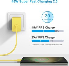 45W USB-C Super Fast Charger Adapter for Galaxy S25 Ultra/S23 with 6Ft Cable