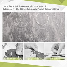 Noticed: A set of four Ukulele String, NOT Include the Ukulele Guitar. 1 set of four Ukulele String, made with nylon materials. 1 x Strings(4pcs). Type: Strings. Product Category: Strings.