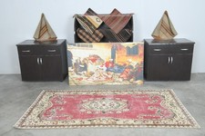 4x7 Turkish Area Rug, Hand-Knotted Vintage Oushak Rug Small, Boho Decor,854
