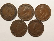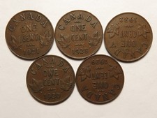 Up for sale is a group of 5 George V Canada small cents: 1920, 21, 28, 29, 32.