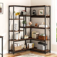 5 Tiers 70.86" Tall L-Shaped Bookcase, Large Corner Bookshelf Rustic Brown
