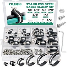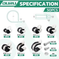 50PCS Cable Clamps with Screws Assortment Kit 304 Stainless Steel Rubber Coat...