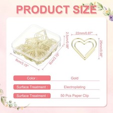 Questo set di fermagli di metallo a forma di cuore è progettato per migliorare l'organizzazione e lo stile. Ideali per uffici o case, i fermagli aggiungono un tocco decorativo mentre fissano in modo sicuro documenti, lavoretti o foto. Usali come segnalibri, dettagli per album o decorazioni per regali per un appeal versatile.Specifiche:Colore: Oro;Materiale: Metallo; superficiale: Elettroplaccatura;Forma dei fermagli: Cuore;Dimensioni dei fermagli: 25 x 22mm / 0.98 x 0.87 pollici (L*P);Dimensioni della scatola: 6.5 x 6.5 x 2.5cm / 2.56 x 2.56 x 0.98 pollici (L*P*A);Lista della confezione: 50 x Fermaglio, 1 x Scatola di plasticaVantaggi:Realizzati in metallo con una finitura, questi fermagli resistono alla ruggine, garantendo un uso a lungo termine.