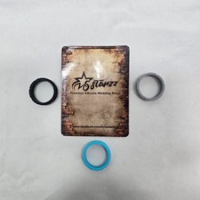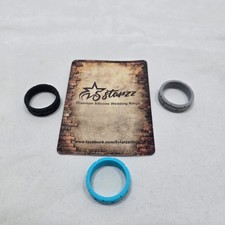 5Starzz Premium Silicone Wedding Ring Band Set. 5Starzz premium silicone wedding ring bands (3 rings). Notes: Silicone wedding ring band set including three rings in black, gray, and blue. Set of three premium silicone wedding bands.