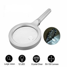 5X/10X Reading Magnifying Glass Hand-Held Magnifier 12 LED Lamp Microscope Loupe