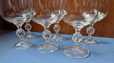 6 Bohemia crystal water goblets CLAUDIA, faceted ball stem, elegant drinkware - excellent condition - 6 1/2" tall.