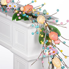 Upgraded lush-berry and spring garland Vine. Bring the freshness of spring to cheer for Easter with you and your family!. Or DIY into a Easter wreath hung on your door, window and wall. Create a realistic touch with wood-like tree trunksThe wire stems of the eggs and berries are wrapped with floral tape and woven together to form a long flexible vine.