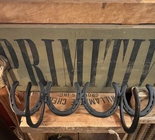 6 Horseshoe Wall forged Iron Coat Hat Rack Western Decor