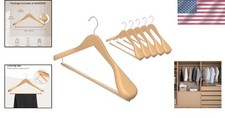 6 Pack Extra Wide Wooden Hangers with Locking Bar for Elegant Storage Solutions
